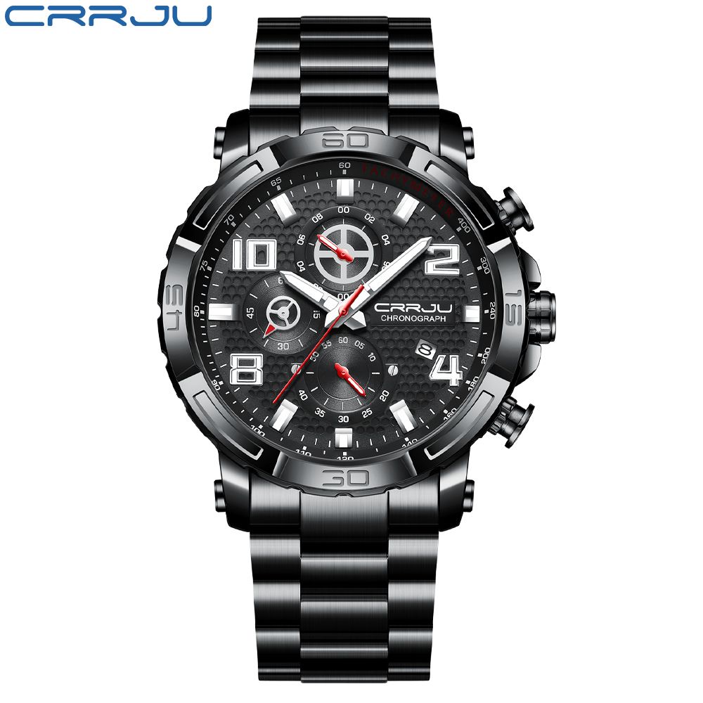 Crrju Casual Sport Stainless Steel Wristwatch Big Dial Waterproof Quartz Clock