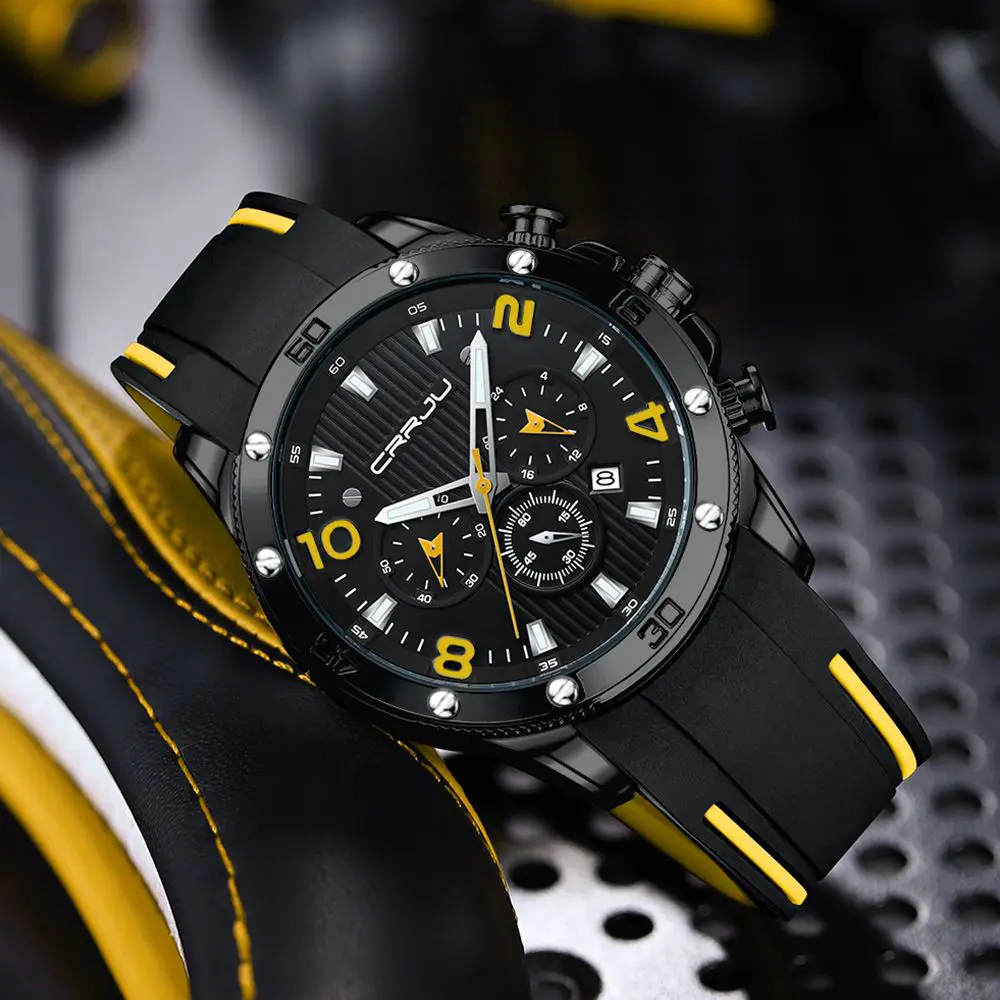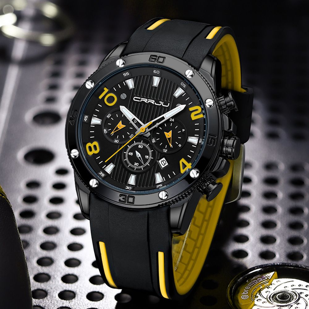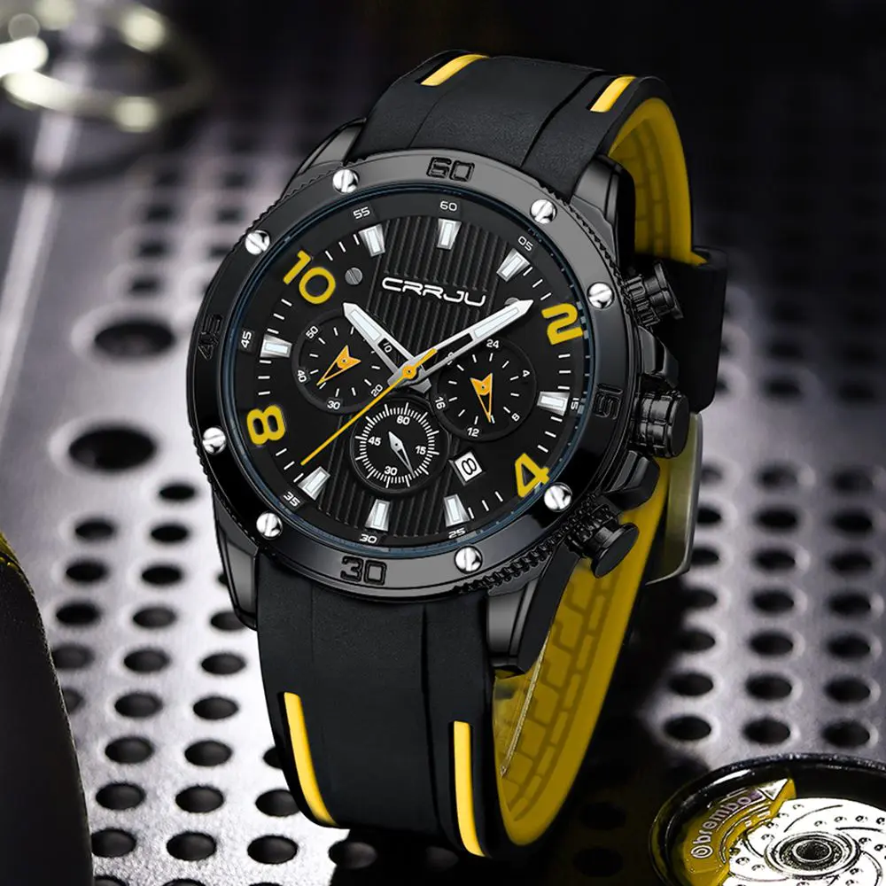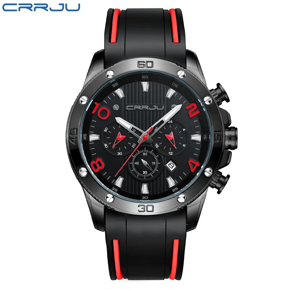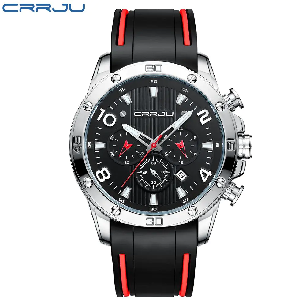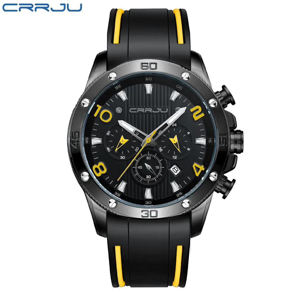 Crrju Luxury Casual Sport Date Quartz Silicone Wristwatches Waterproof Men's Wrist watch